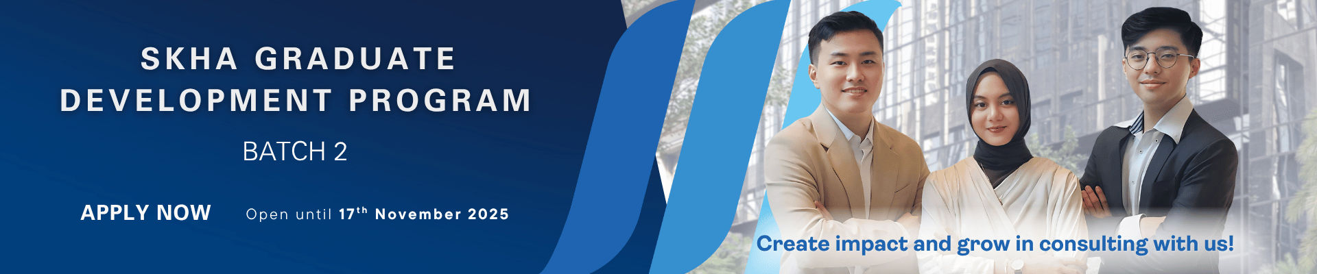 Skha Graduate Development Program (SGDP) returns for its second batch as a structured 12-month development program designed for proactive, responsible, and skilled individuals who aspire to build a career in management consulting. As an Associate Trainee, you will have the opportunity to grow and transform into full-time Consultant at Skha.